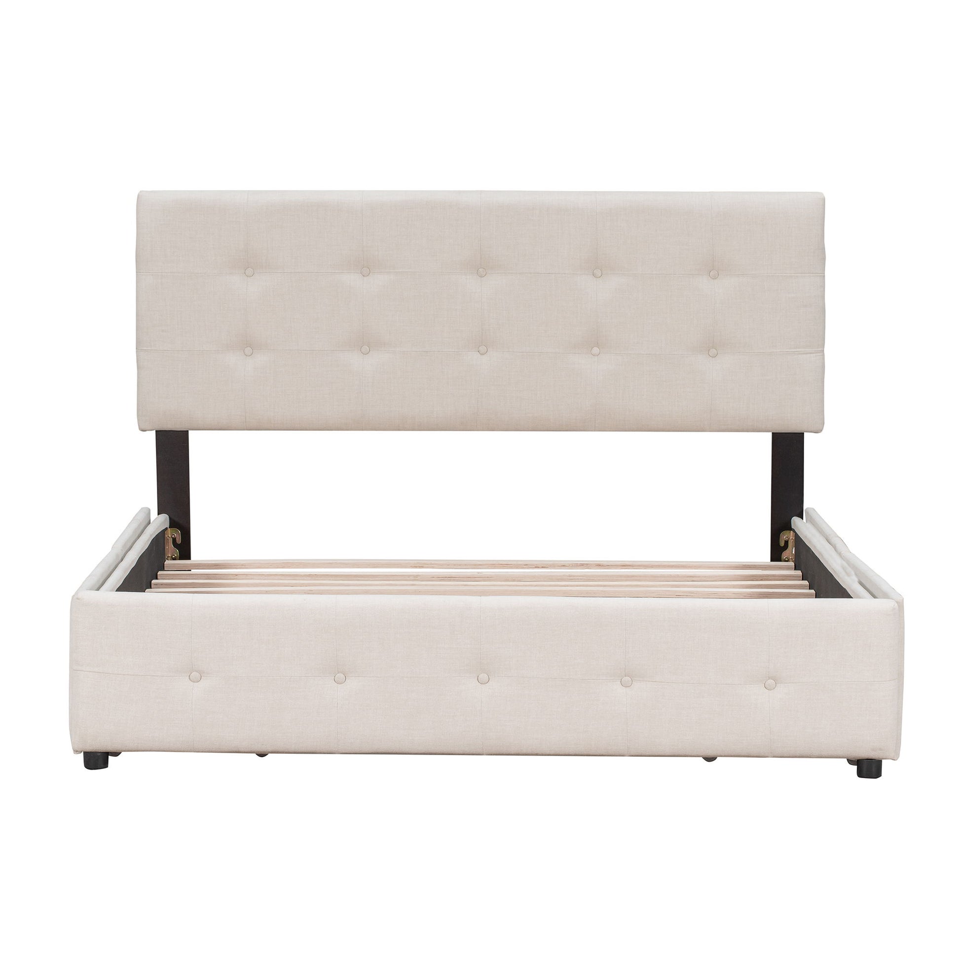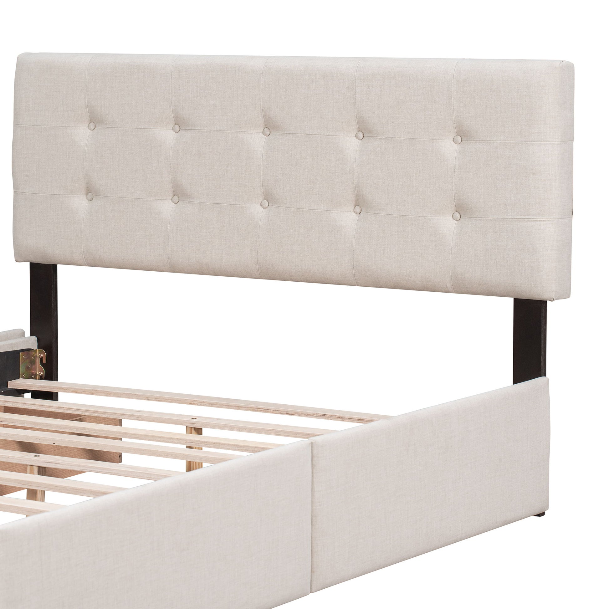 Queen Size Upholstered Platform Bed With Classic Headboard And 4 Drawers, No Box Spring Needed - Beige