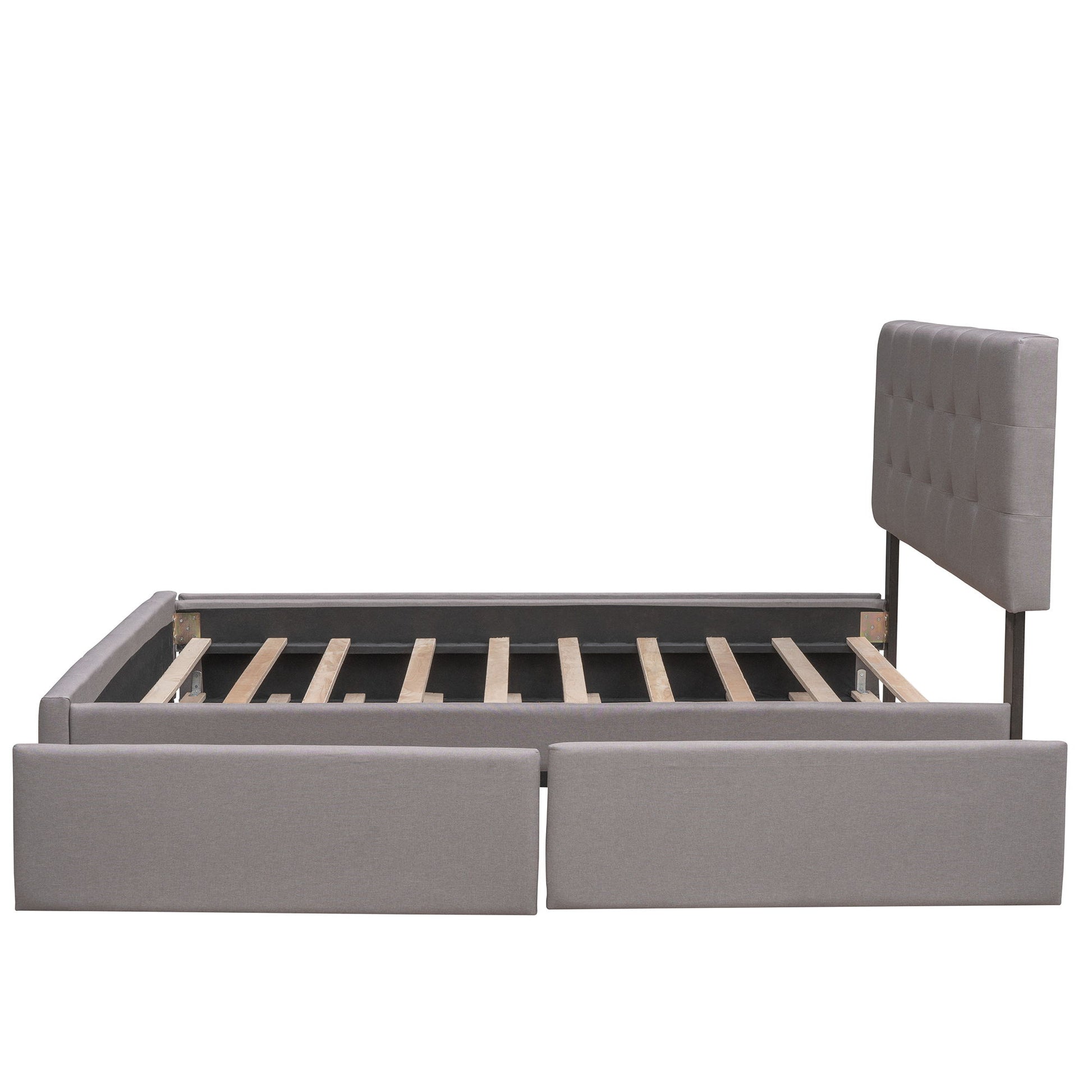 Queen Size Upholstered Platform Bed With 2 Drawers And 1 Twin Long Trundle - Light Gray