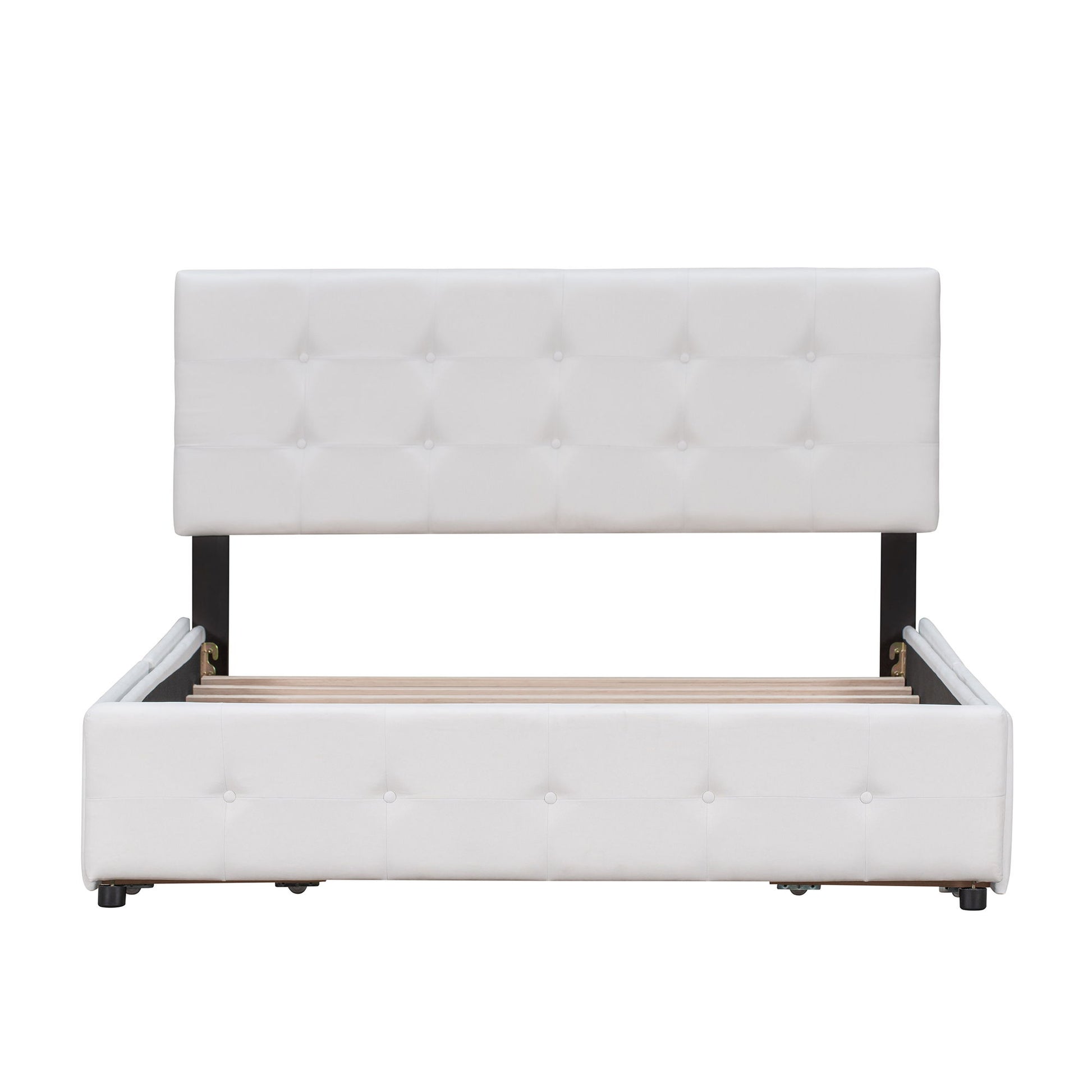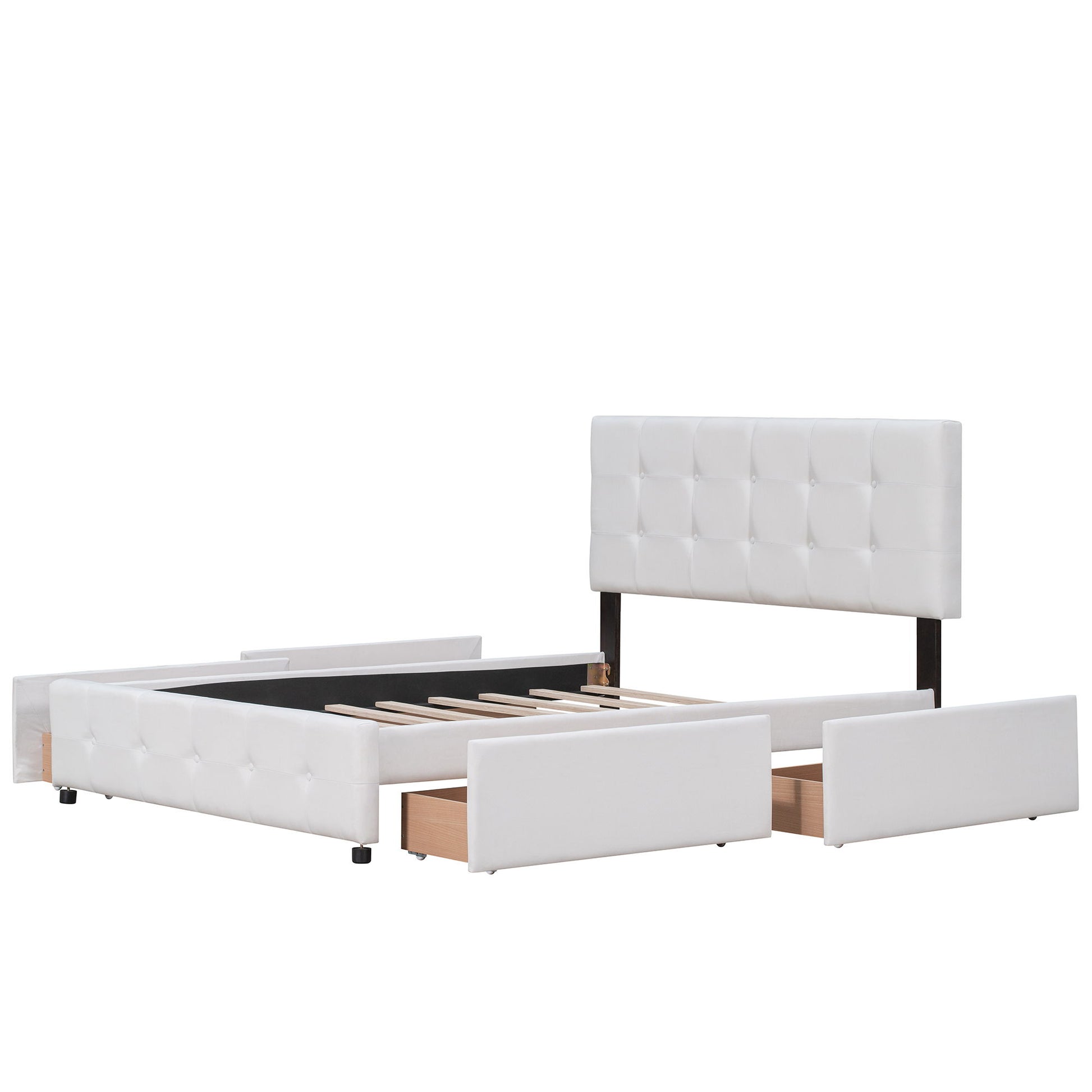Queen Size Upholstered Platform Bed With Classic Headboard And 4 Drawers, No Box Spring Needed - White