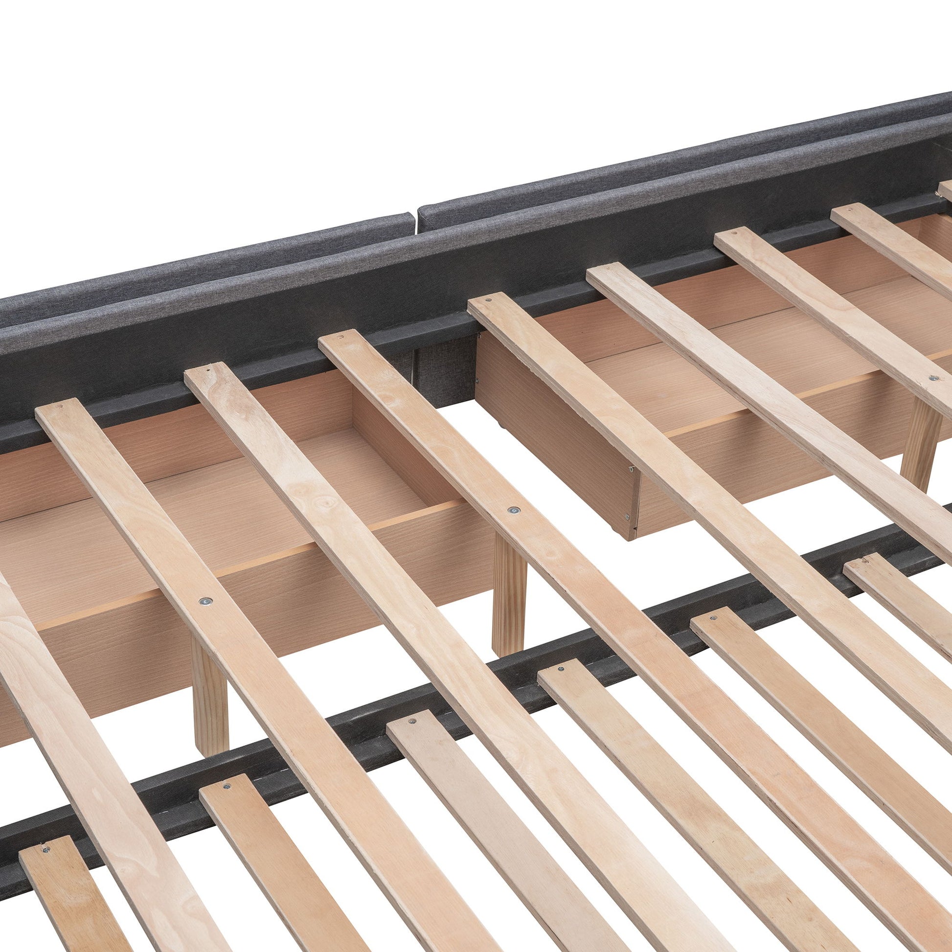 - No Box Spring Required: Equipped with multiple wooden slats, this bed frame eliminates the need for a box spring. It includes a comfy fabric headboard that serves as a cozy backrest, although a mattress is not included.