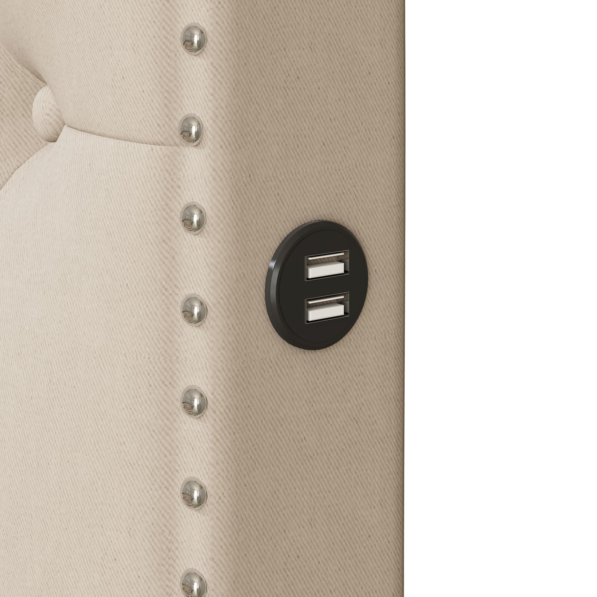Queen Size Upholstered Platform Bed With Twin Size Trundle And 2 Sets Of USB Ports On Each Side - Beige