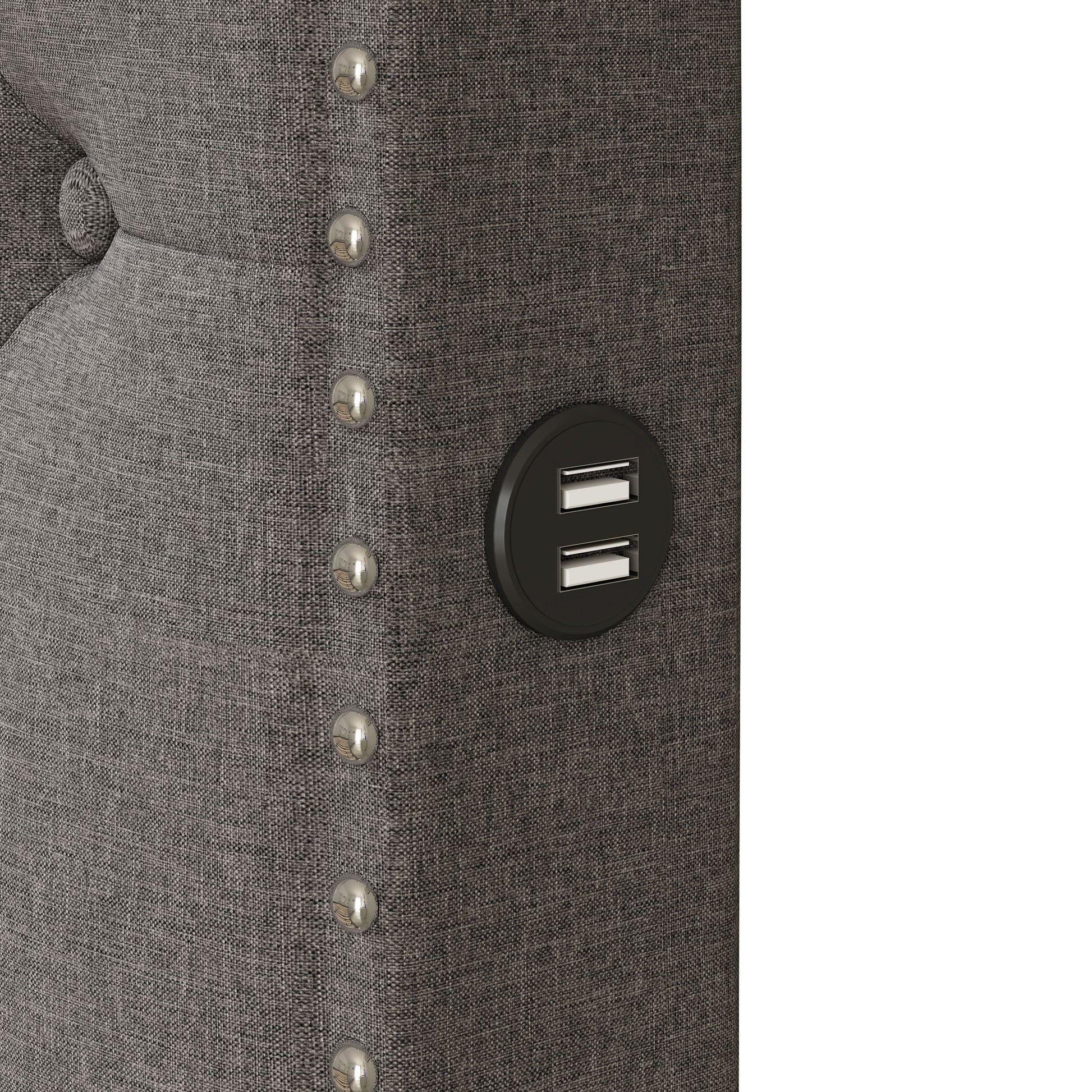 Queen Size Upholstered Platform Bed With Twin Size Trundle And 2 Sets Of USB Ports On Each Side - Gray