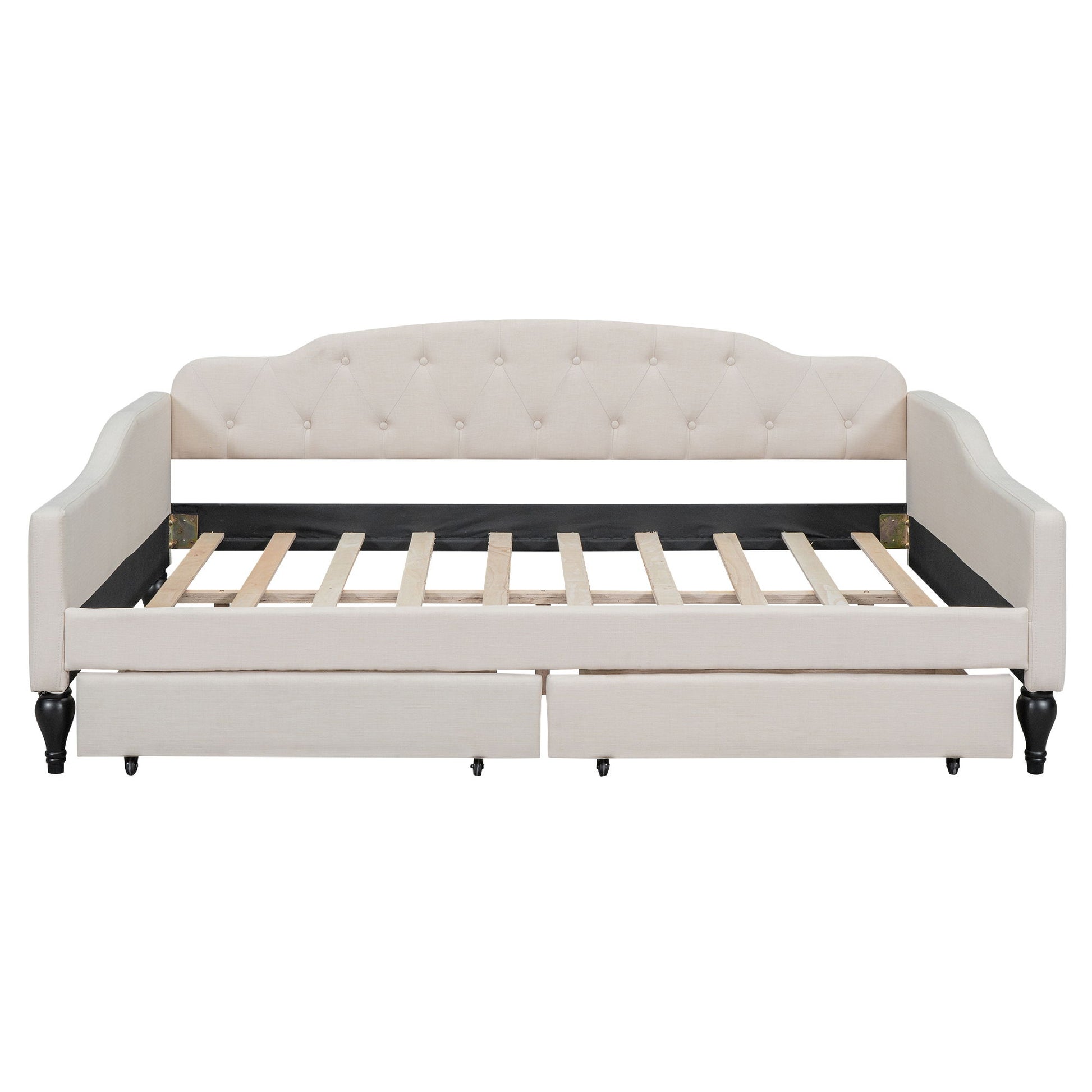 Upholstered Tufted Full Size Daybed With 2 Drawers - Beige