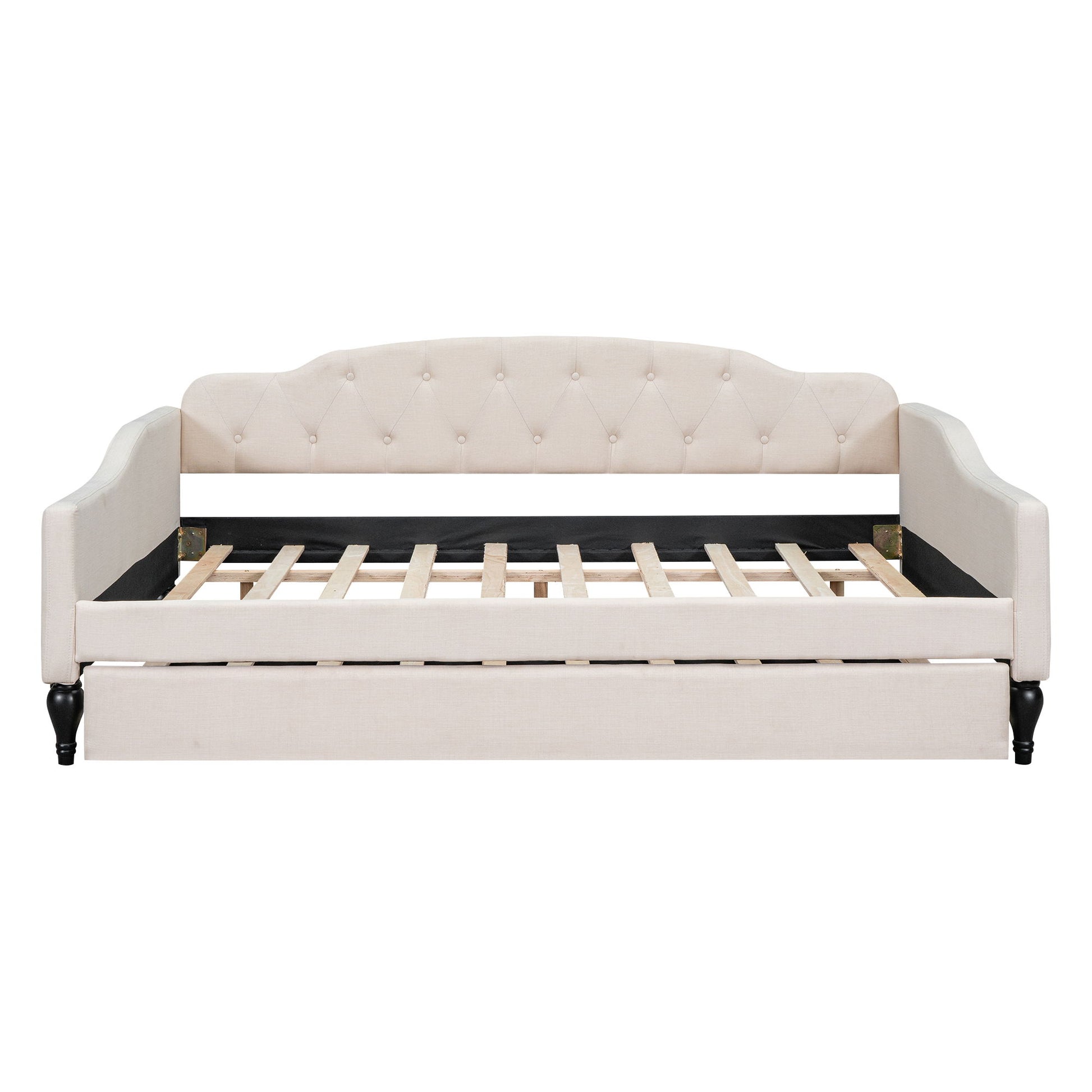 Upholstered Tufted Full Size Daybed With Twin Trundle - Beige