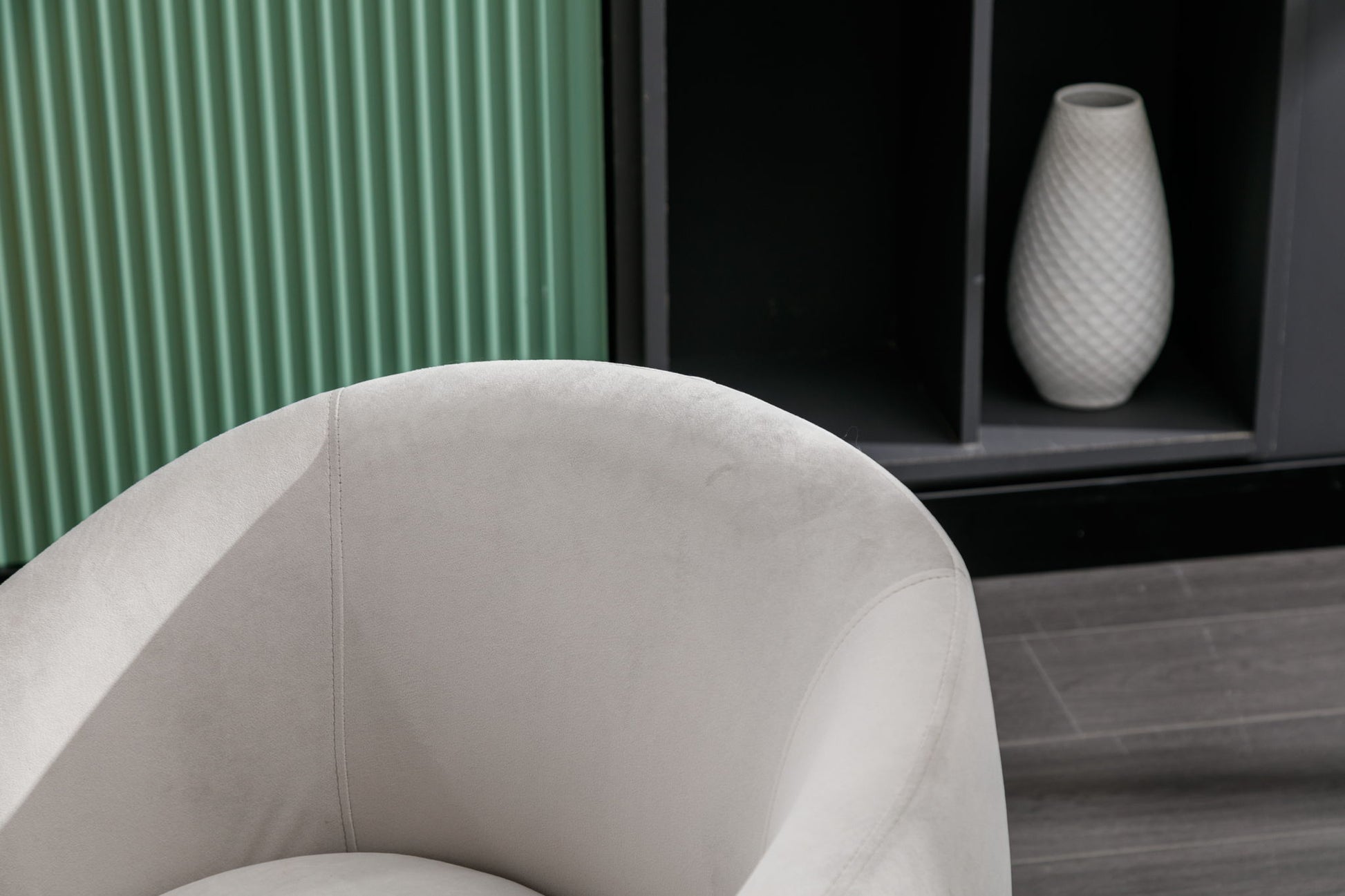 Velvet Fabric Swivel Accent Armchair Barrel Chair With Black Powder Coating Metal Ring - Gray