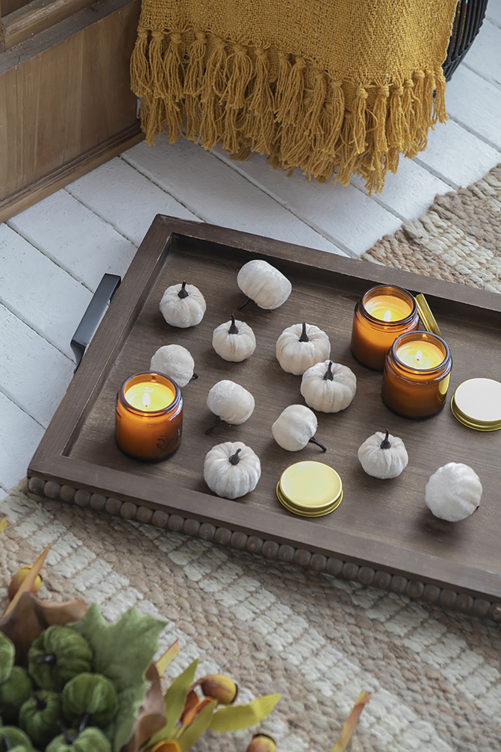 - Decorative Velvet Pumpkins: These little velvet pumpkins are perfect for adding a touch of elegance to your fall decor. Ideal for creating stylish tablescapes or enhancing mantel decorations during the autumn months.