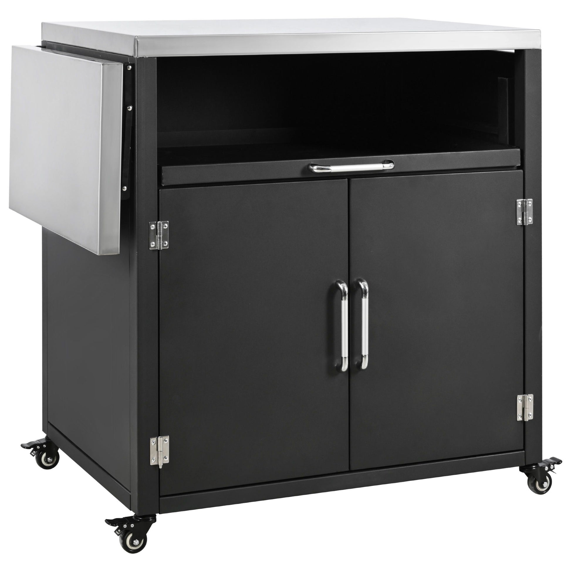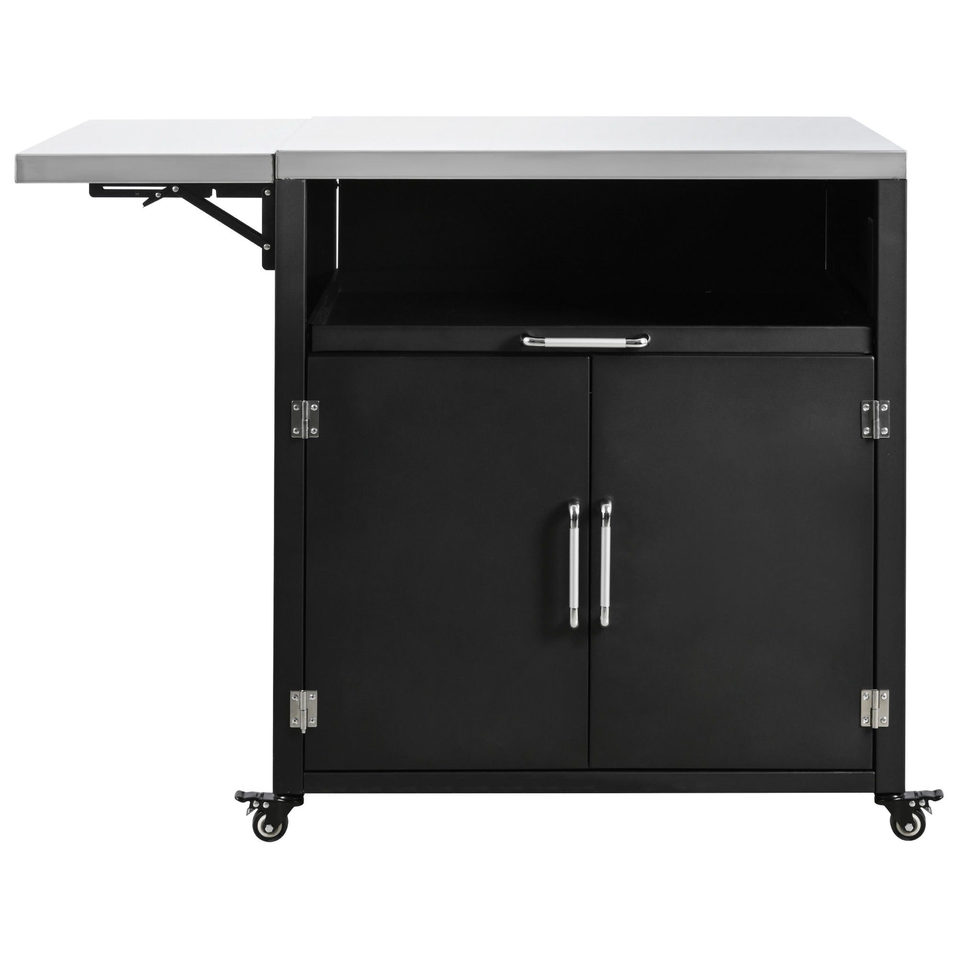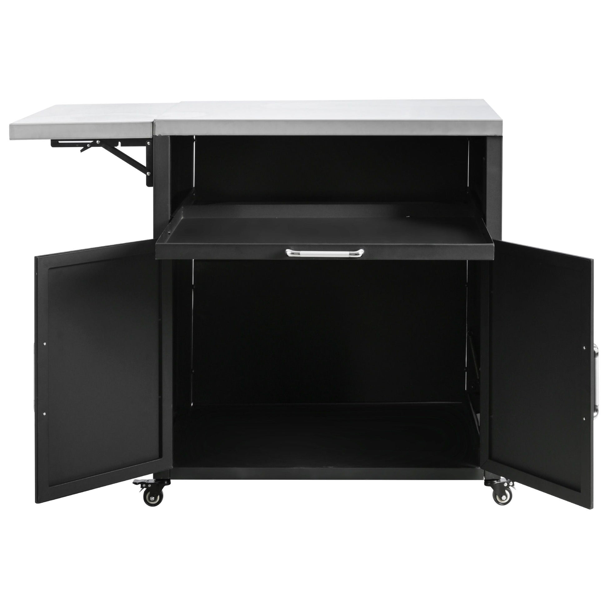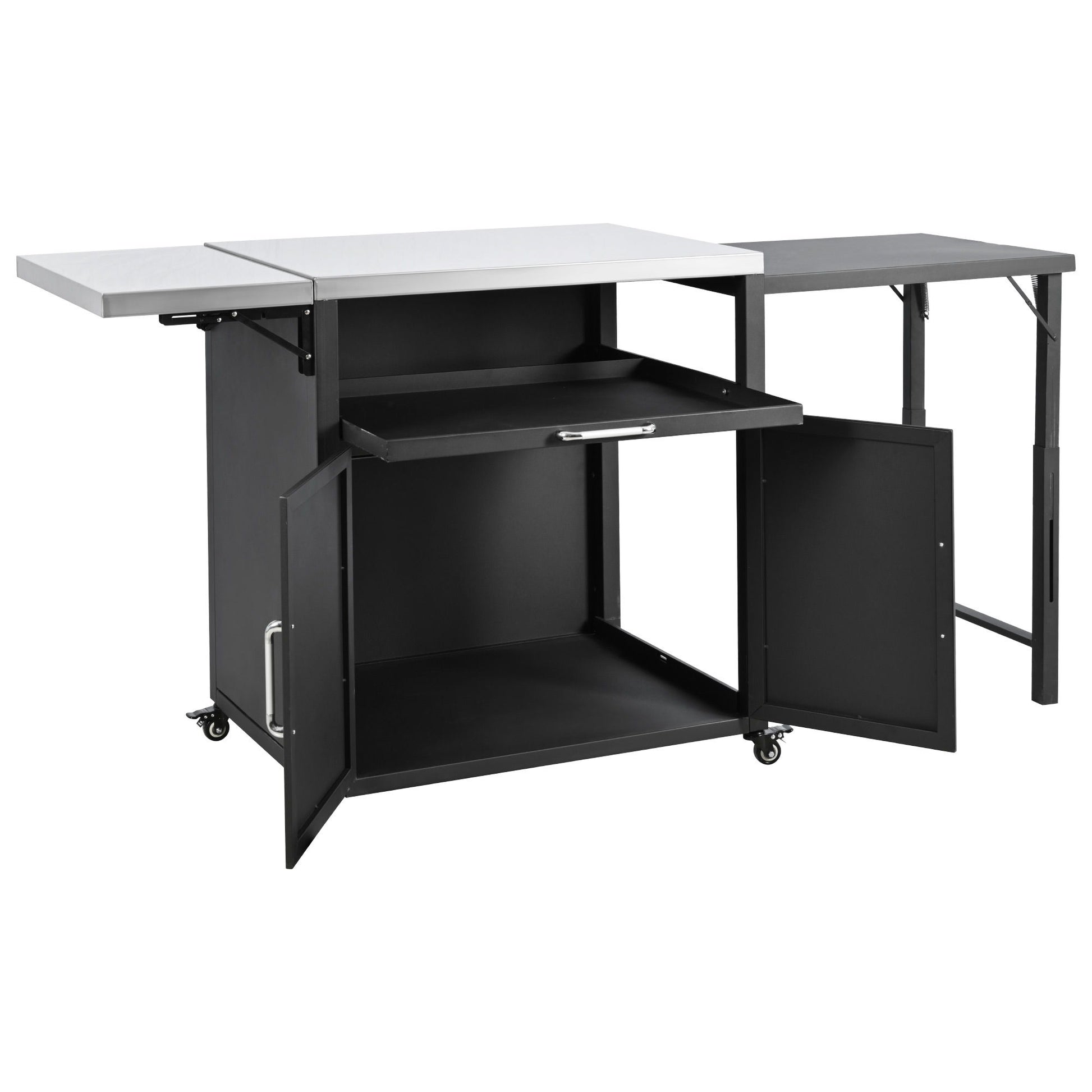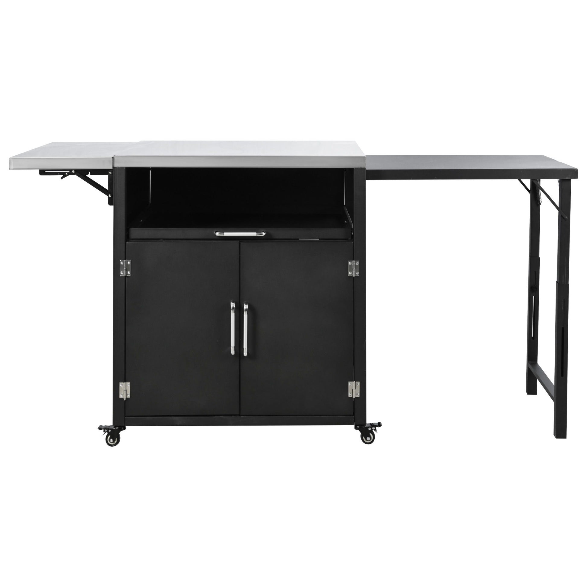 Versatile Outdoor Cabinet With Folding & Expandable Work Surfaces, Ample Storage Space, And Lockable Wheels - Matte Black
