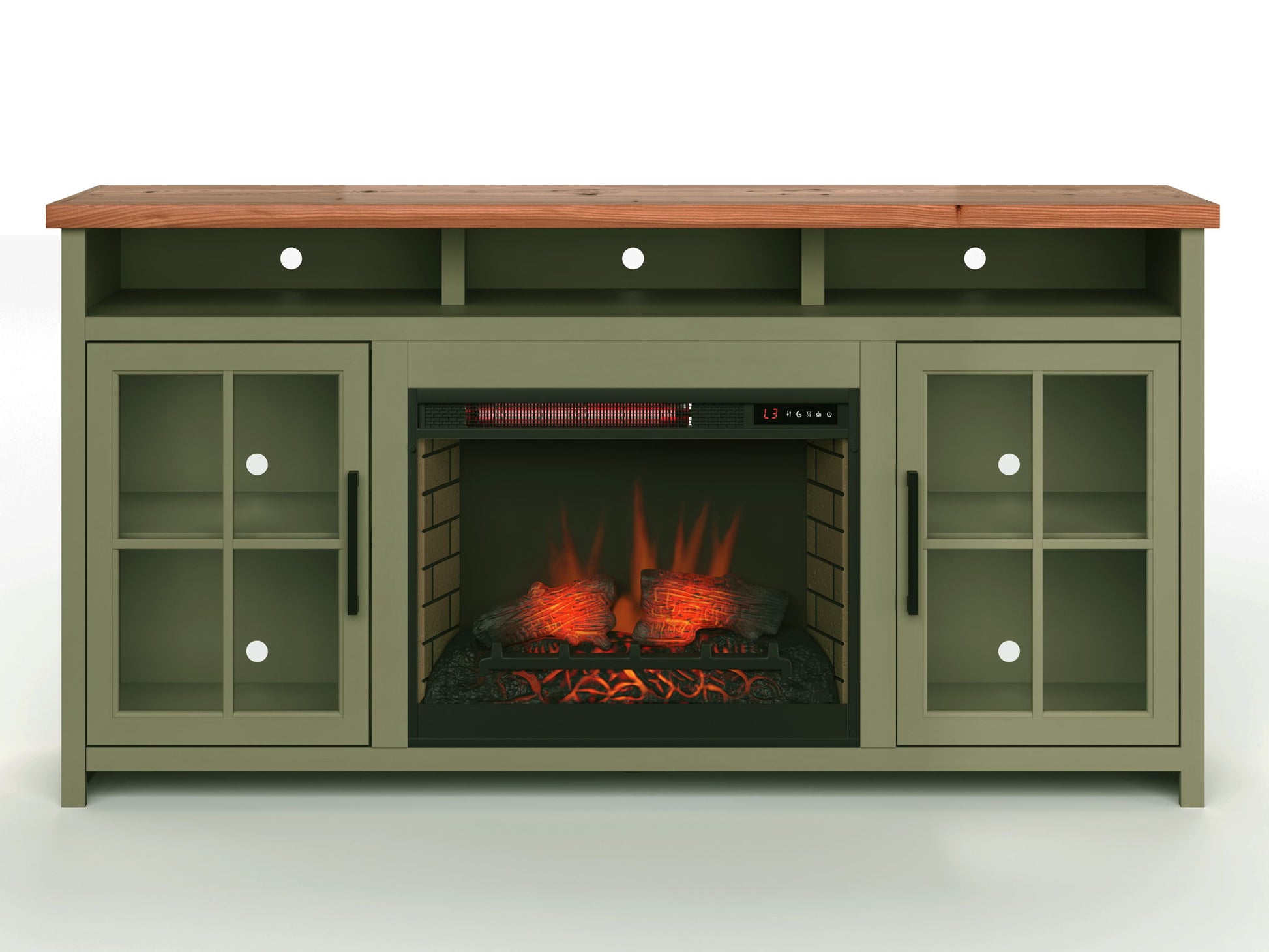Vineyard - 74" Fireplace TV Stand Console For TVs Up To 85" - Sage Green And Fruitwood
