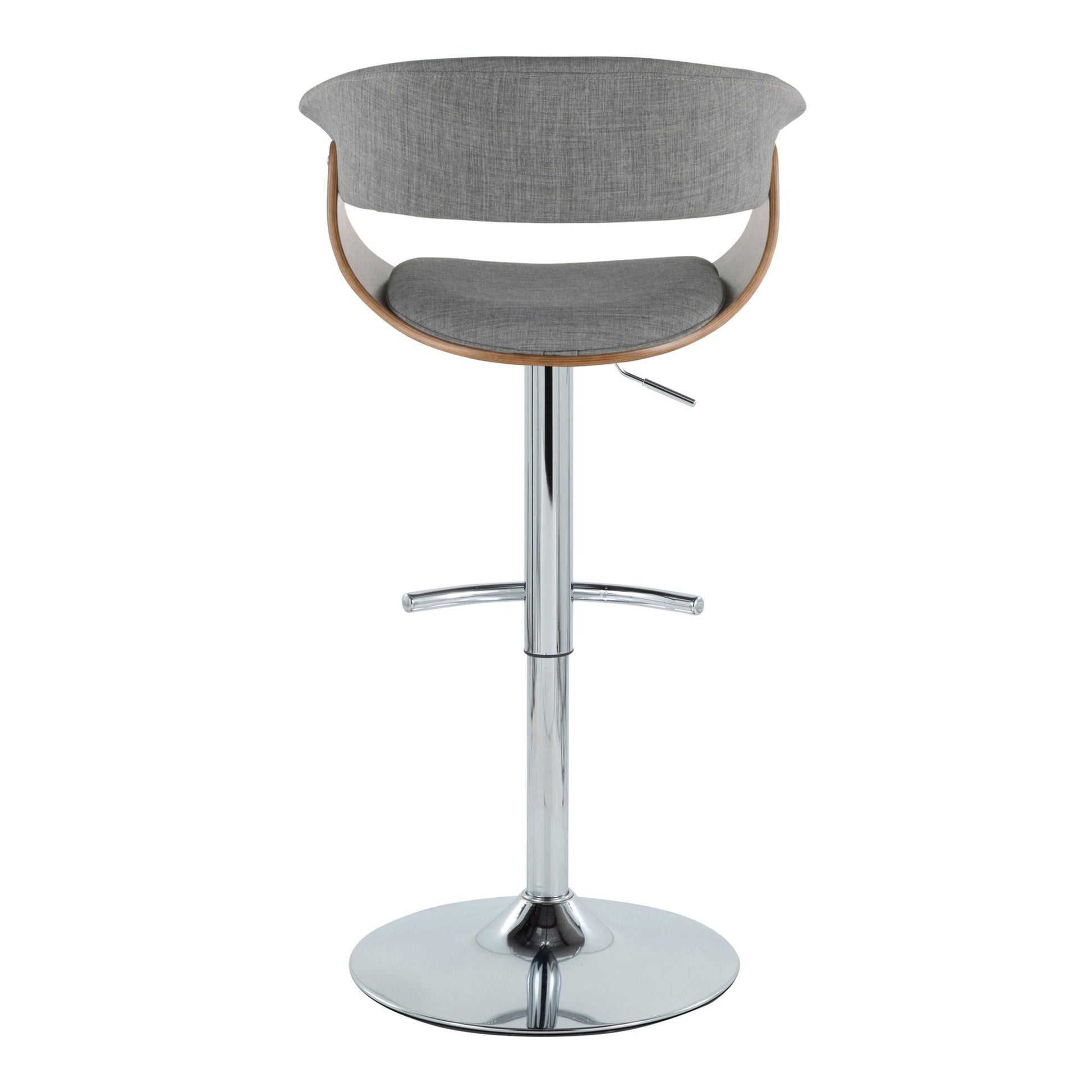 Vintage Mod - Mid-Century Modern Adjustable Height Barstool With Swivel With Rounded T Footrest (Set of 2) - Chrome / Walnut / Light Gray