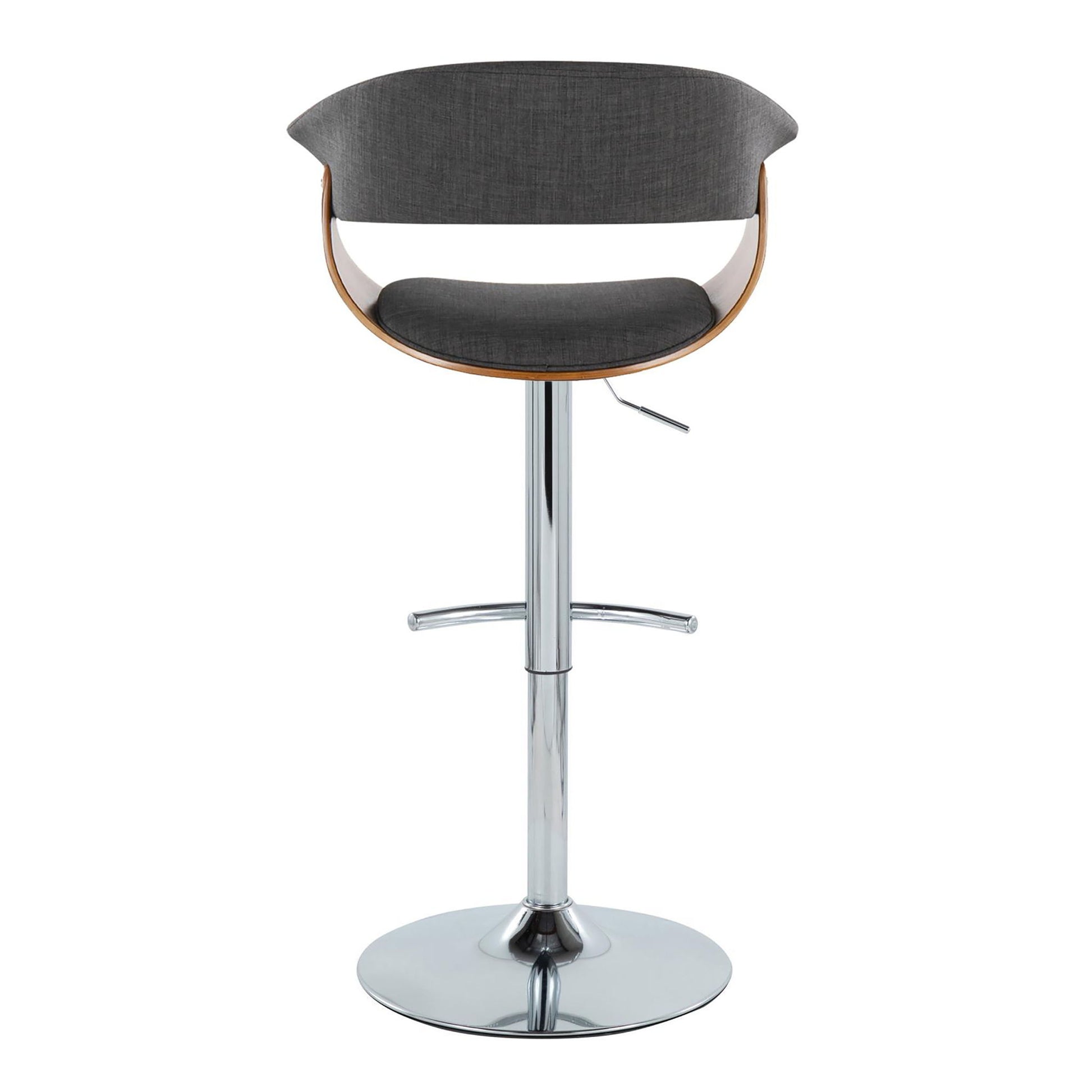 Vintage Mod - Mid-Century Modern Adjustable Height Barstool With Swivel With Rounded T Footrest (Set of 2) - Chrome / Walnut / Charcoal