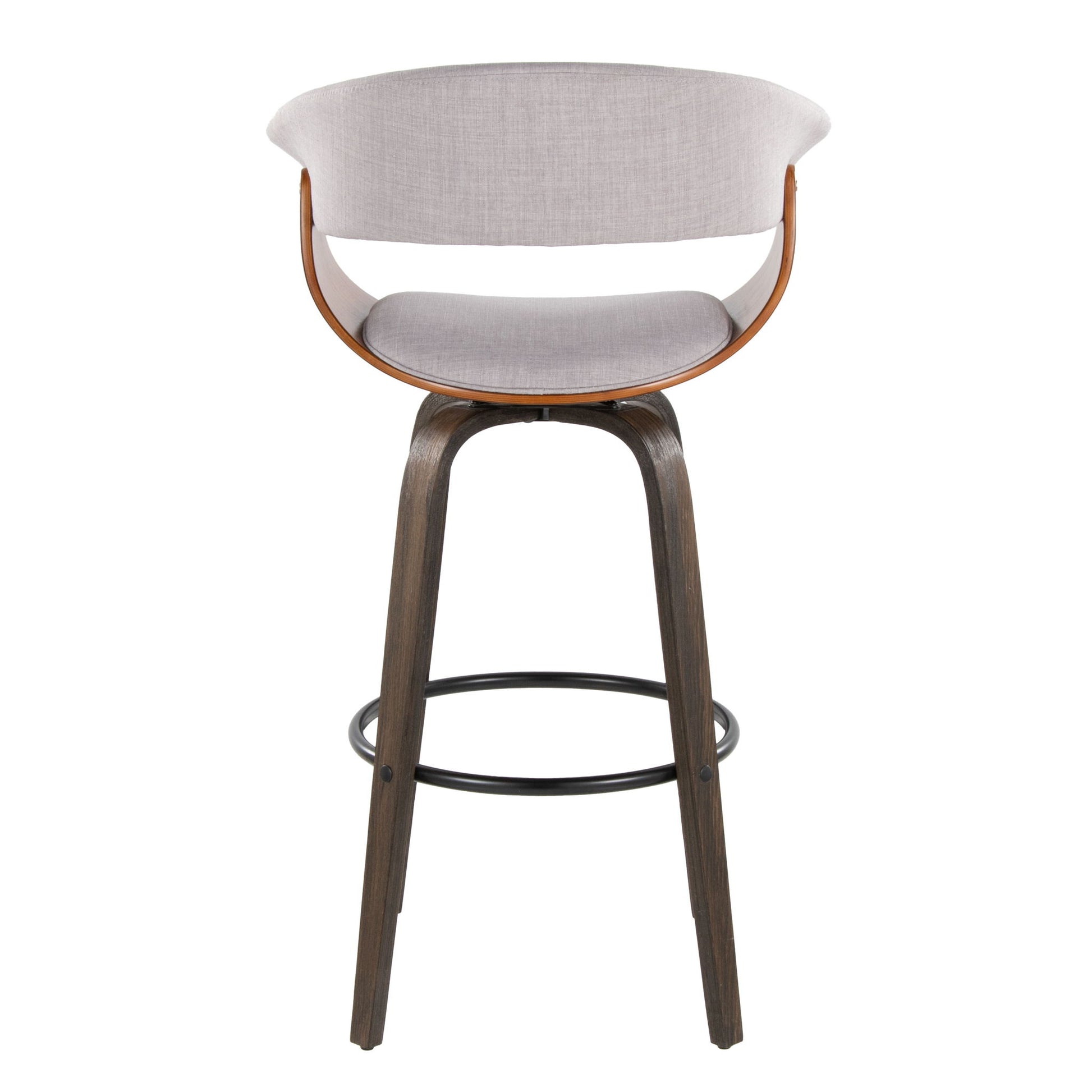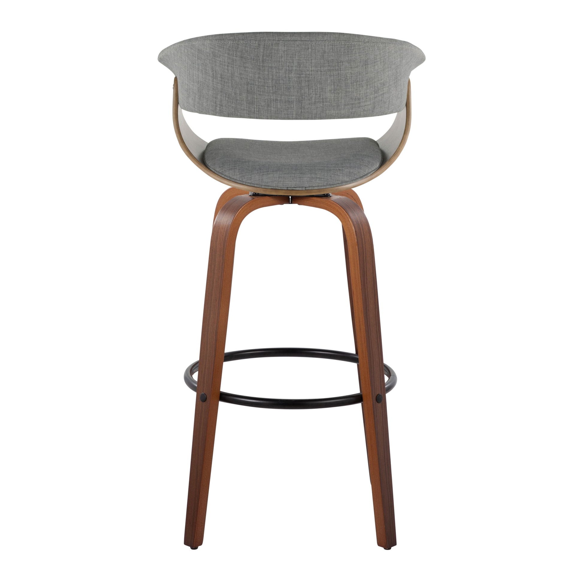 Vintage Mod - Mid-Century Modern Fixed Height Barstool With Swivel & Round Footrest (Set of 2) - Walnut / Light Gray