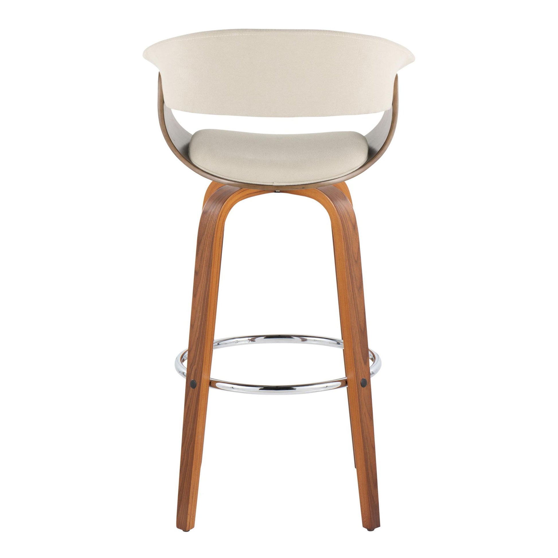Vintage Mod - Mid-Century Modern Fixed Height Barstool With Swivel With Round Footrest (Set of 2) - Walnut / Cream