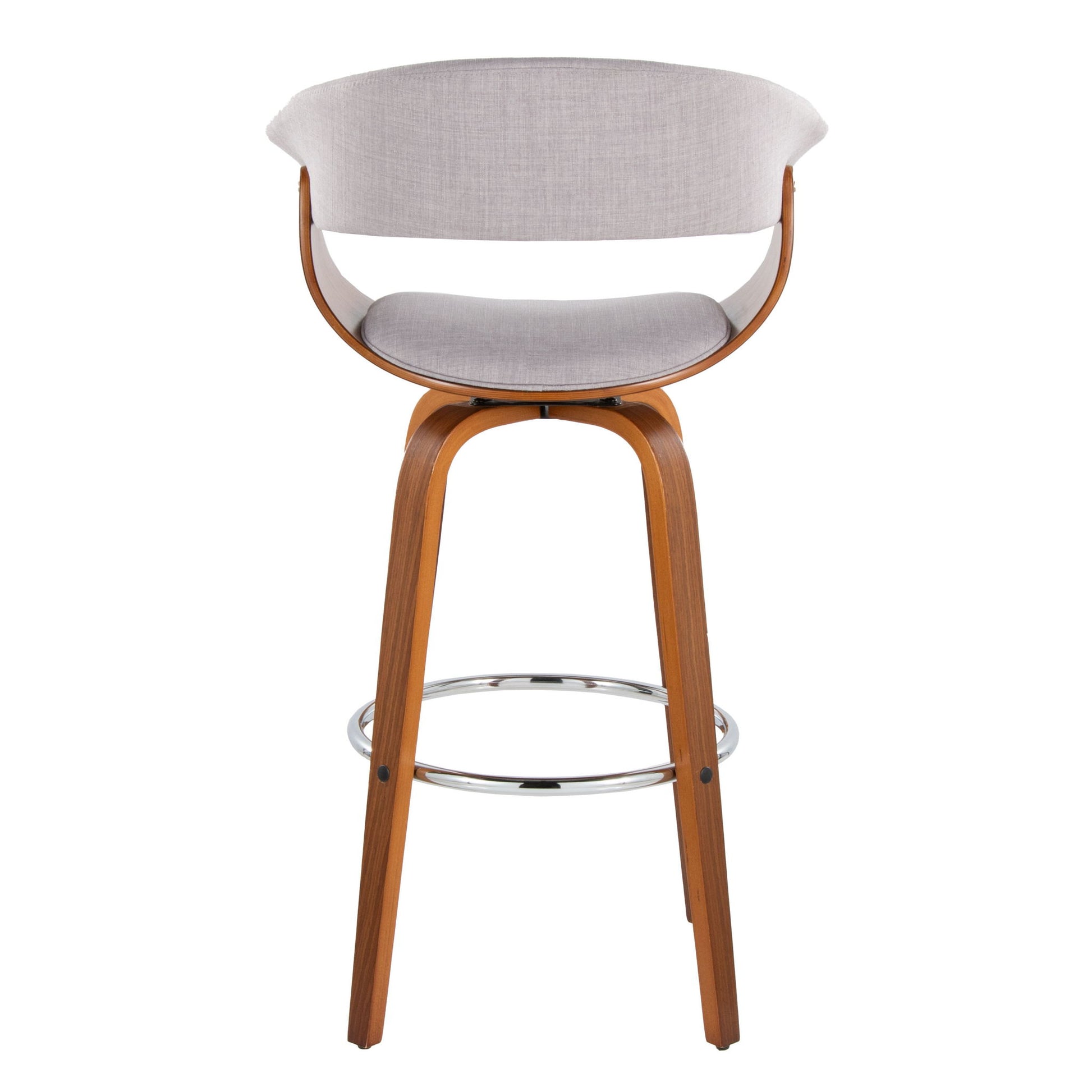 Vintage Mod - Mid-Century Modern Fixed Height Barstool With Swivel With Round Footrest (Set of 2) - Walnut / Light Gray