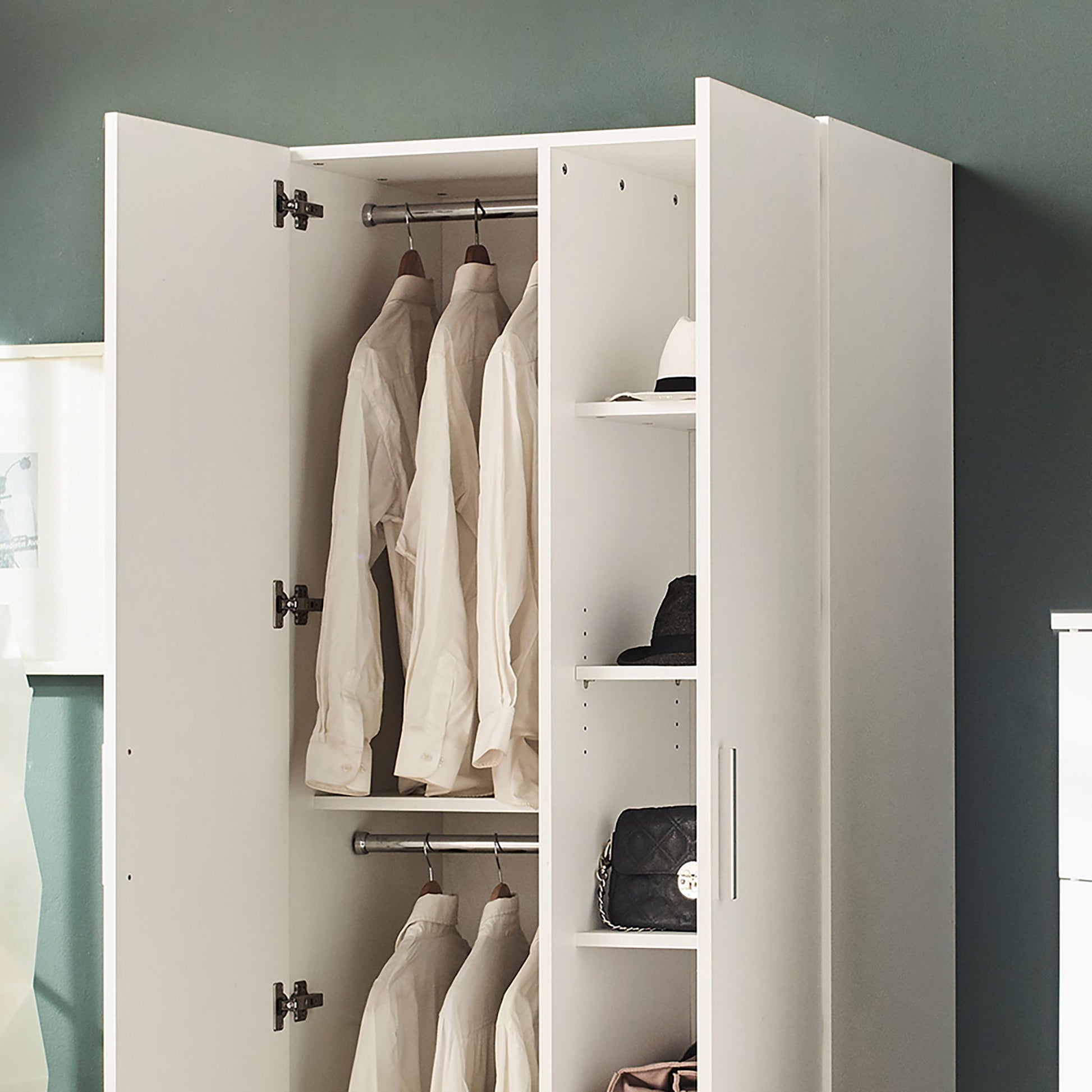 Viviane - Contemporary Wood Closet With Hanging Bars And 5 Shelves - White