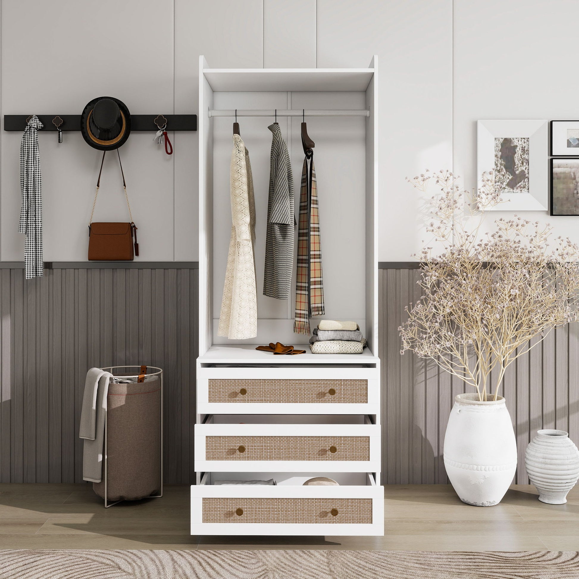 Wardrobe With 3 Drawers High Wardrobe Armoire With Rattan For Living Room Organizer - White