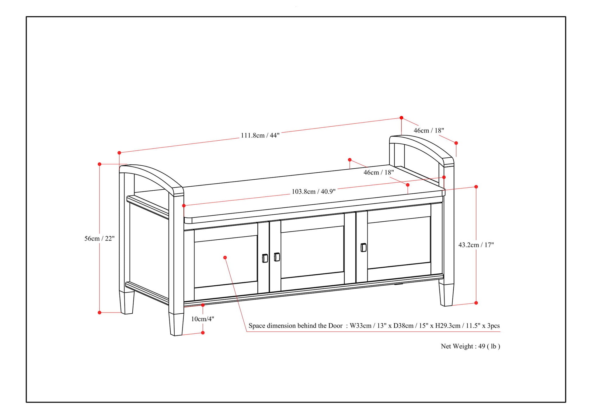 44.0"W x 18.1"D x 22.0"H - 48.9 lb