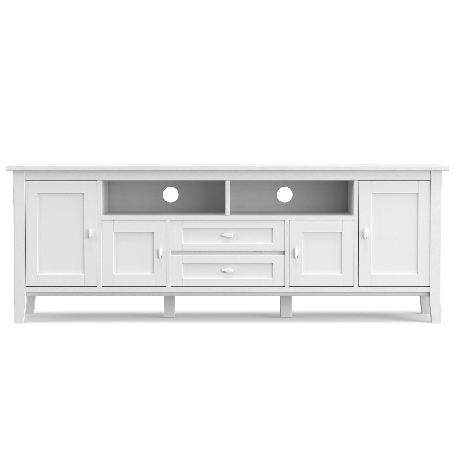 - Extra wide TV Stand is perfect for TVs up to 80 inches, includes cord management cut-outs for easy installation of TV and media components.
