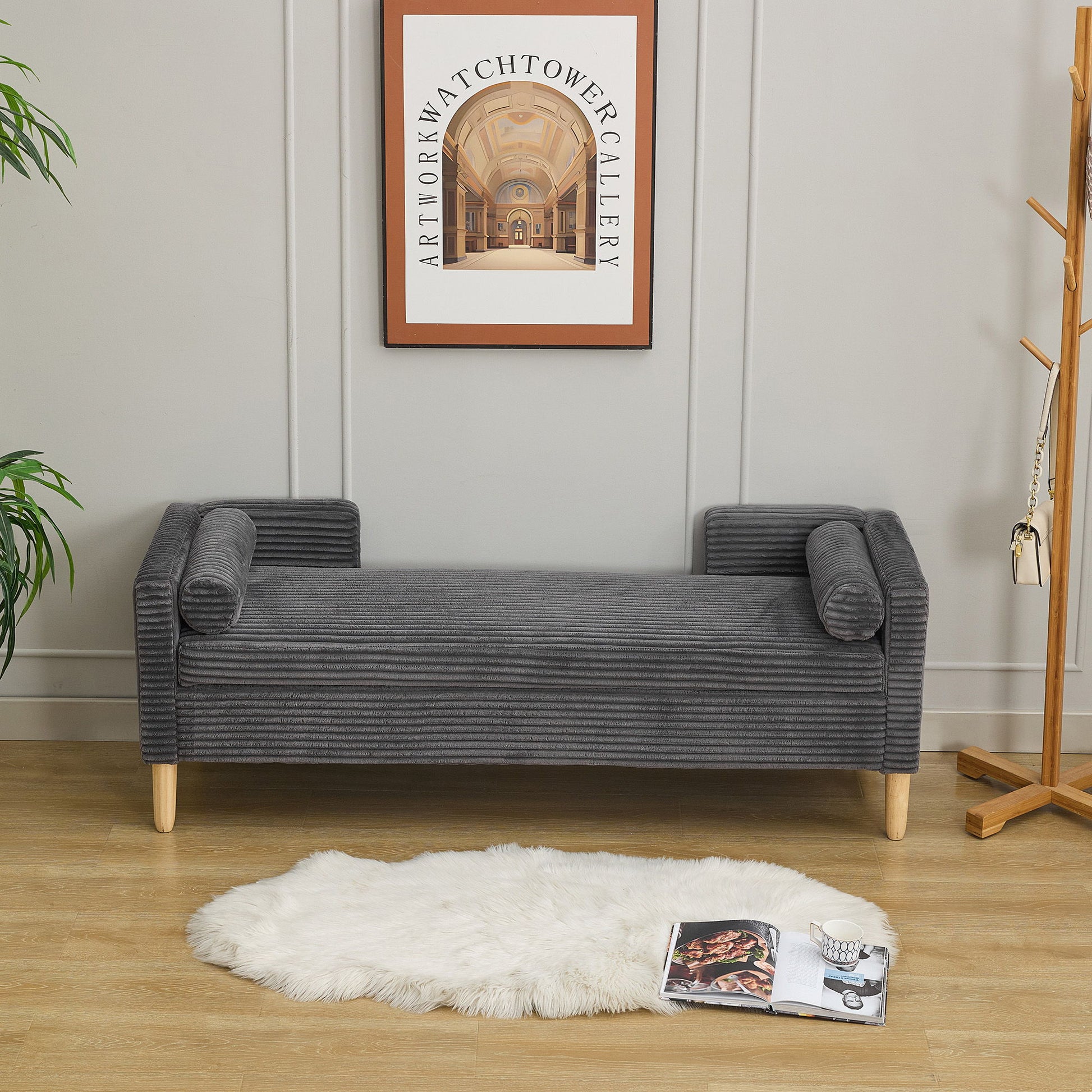 Wide Corduroy Storage Soft Bench With Armrests, Backrest And Two Bolster Pillows