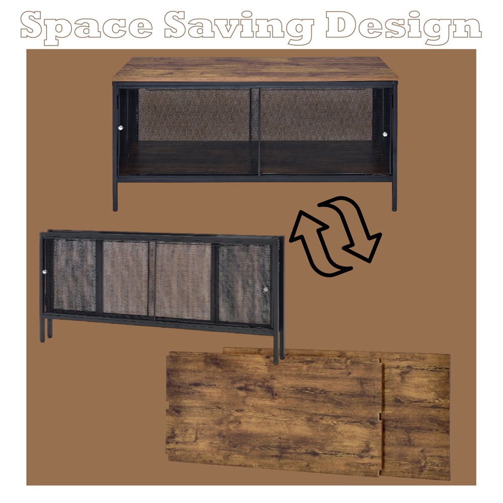 - Includes: Foldable Function with No Tool required, Wooden Top, Metal Mesh Base