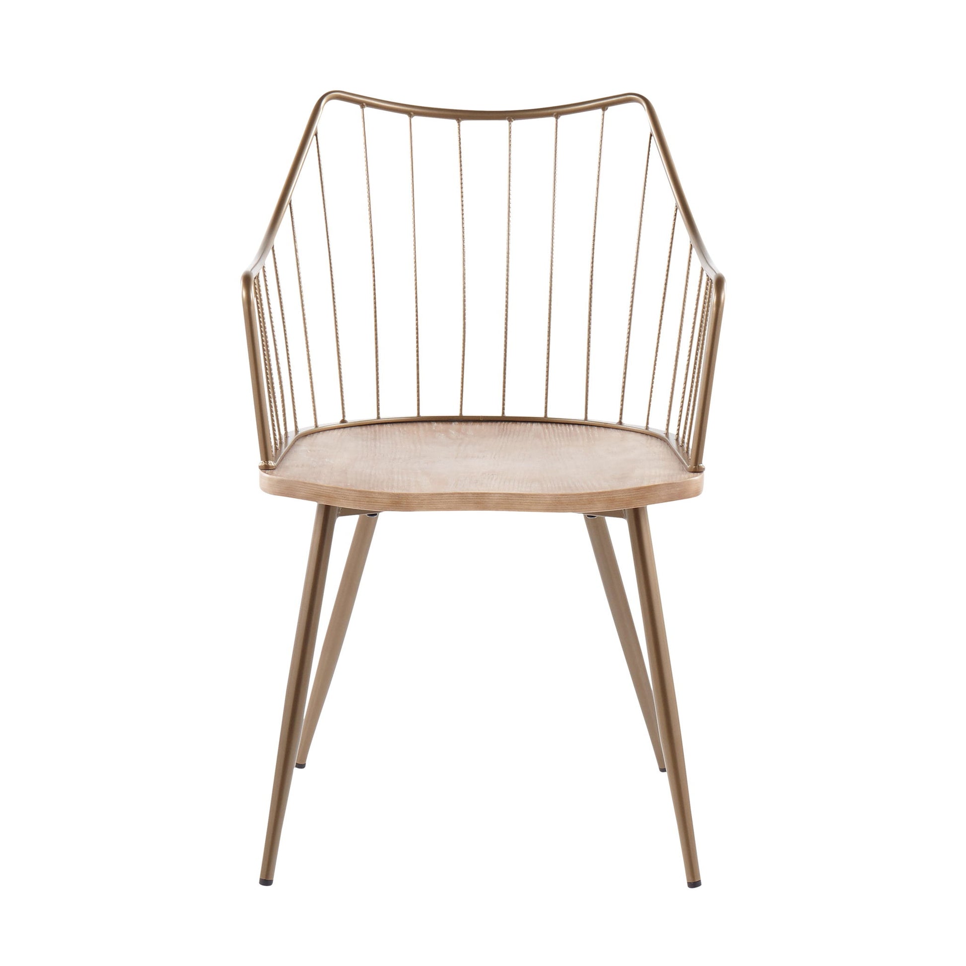 - Classic Design Update: The Winston Chair by LumiSource offers a refreshed take on a classic design with its metal frame and spindle-defined arched backrest, complemented by tapered legs and a wood seat.
