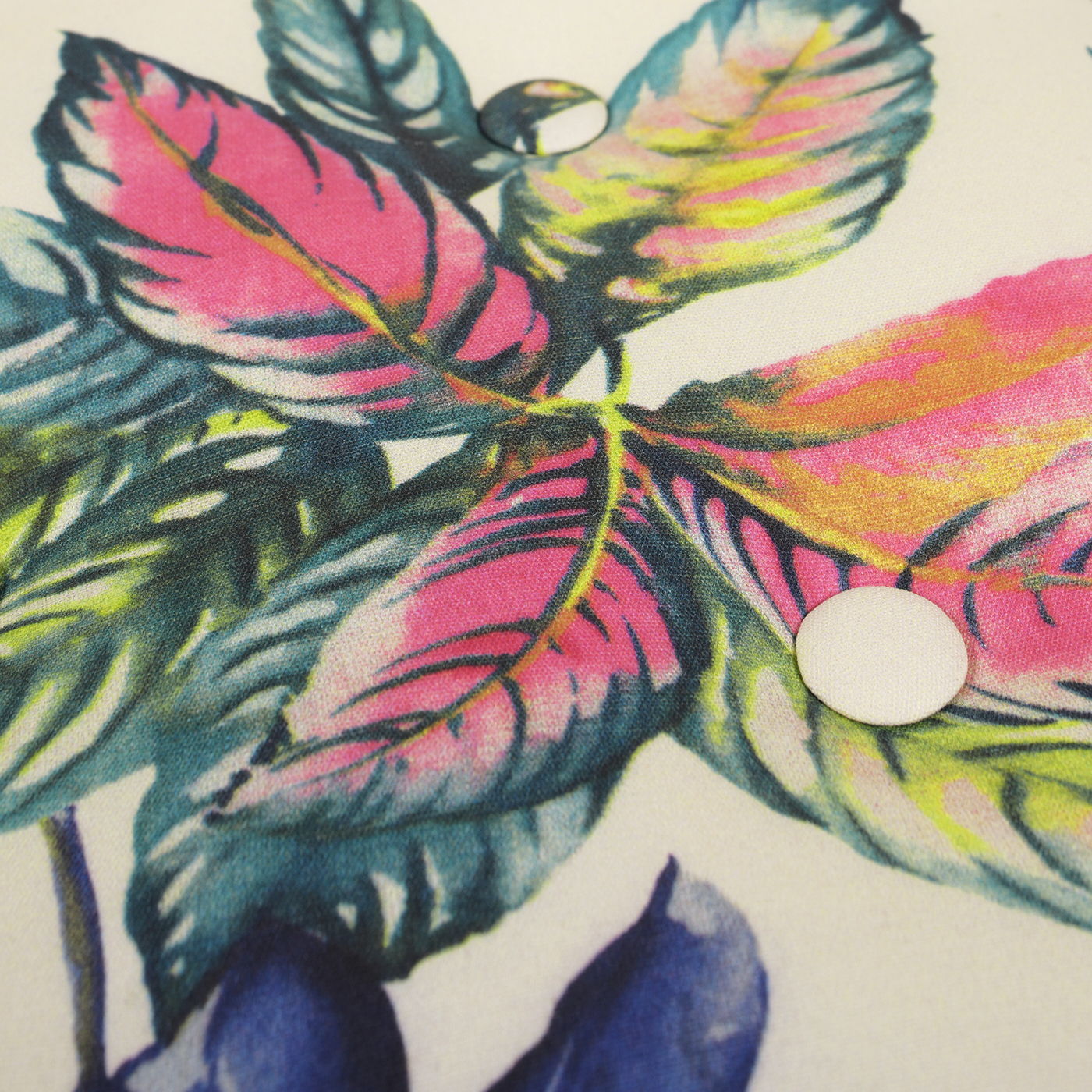 Yolanda - Tropical Floral Round Upholstered Accent Ottoman - Beige / Ivory