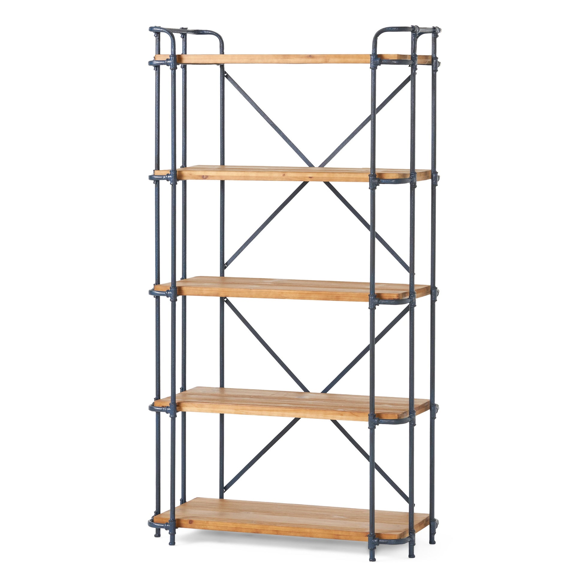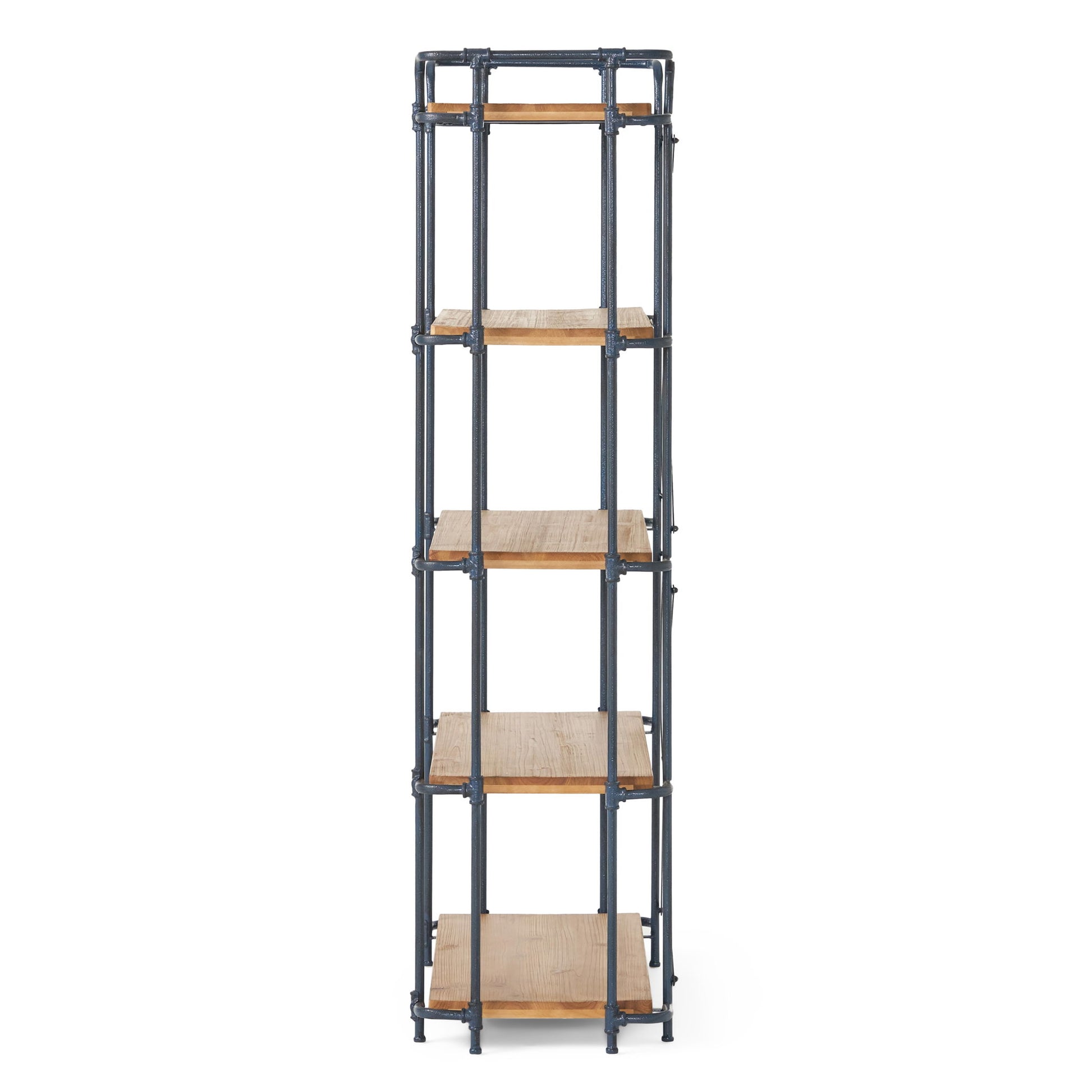 Yorktown - Industrial 5 Shelf Bookcase With Metal Pipework And Solid Fir - Natural