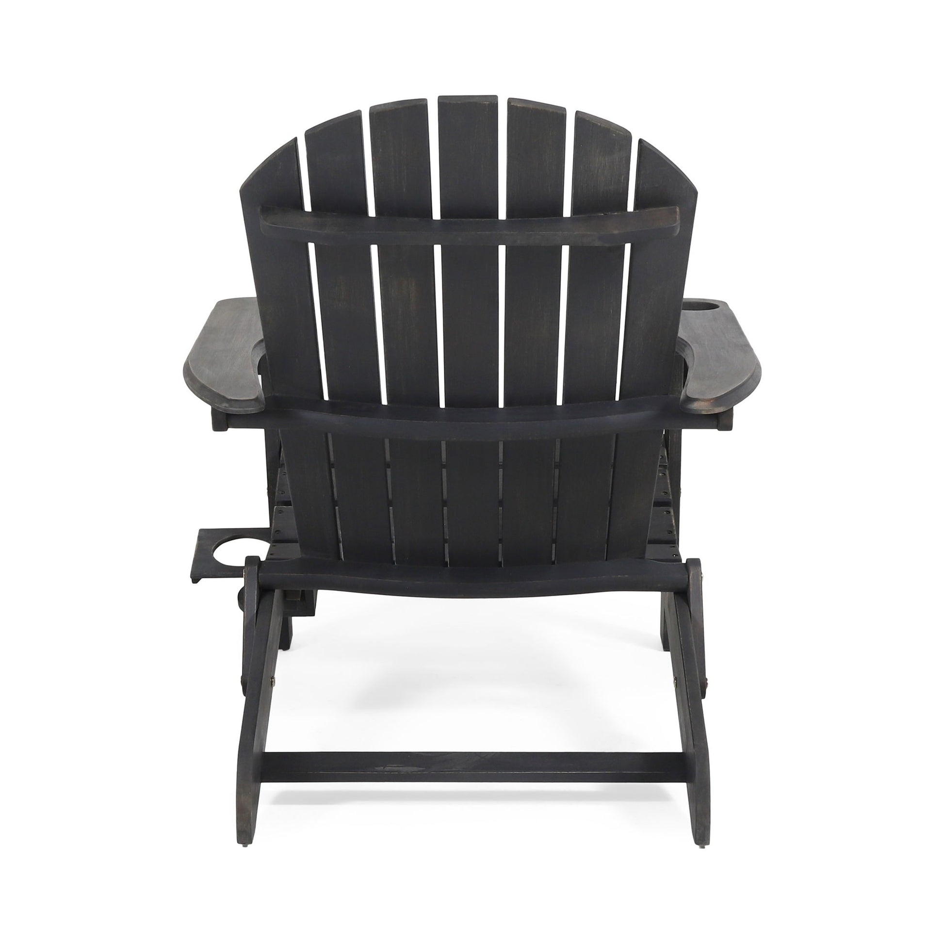 Zenithia - Outdoor Foldable Adirondack Chair With 2 Cup Holders - Dark Gray