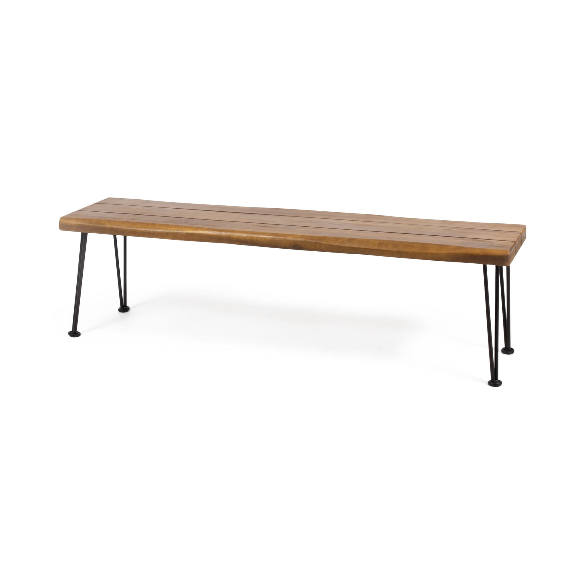 Zion - Industrial Wood And Metal Rectangular Bench With Faux Live Edge Design - Teak
